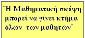 Βασικός στόχος είναι να έρθουν ΟΛΟΙ οι μαθητές σε επαφή με τις πτυχές της Μαθηματικής σκέψης, του Μαθηματικού συλλογισμού.