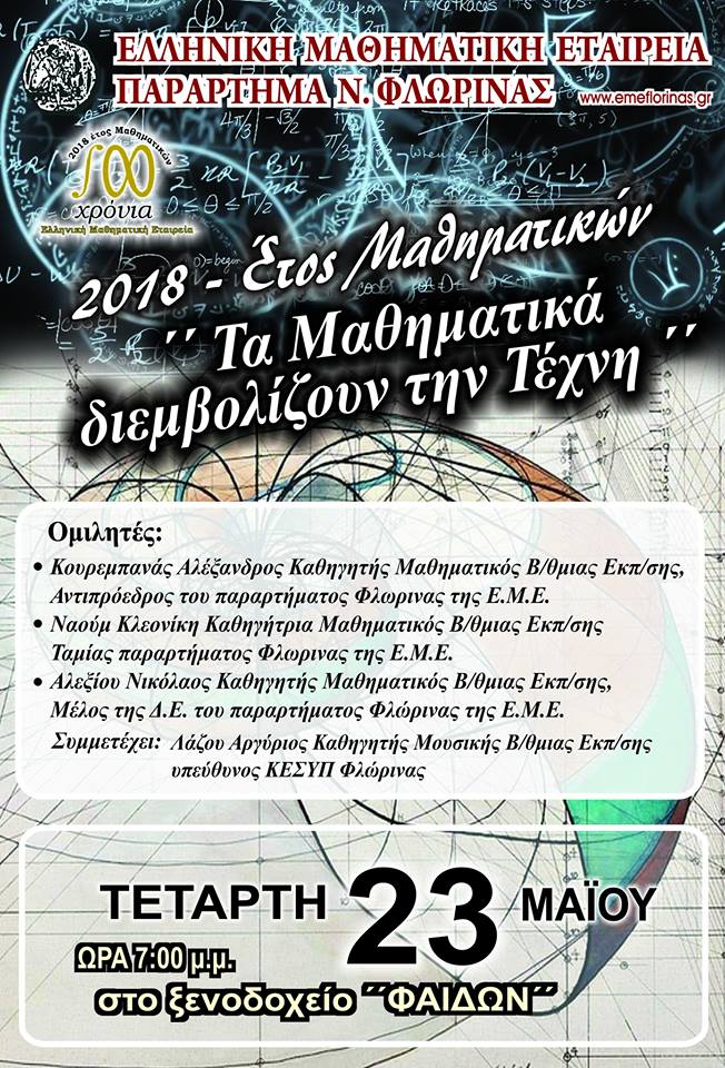 Το παάρτημα της ΕΜΕ Φλώρινας στο πλαίσιο των 100 χρόνων της Ελληνικής Μαθηματικής Εταιρείας(Ε.Μ.Ε.)
